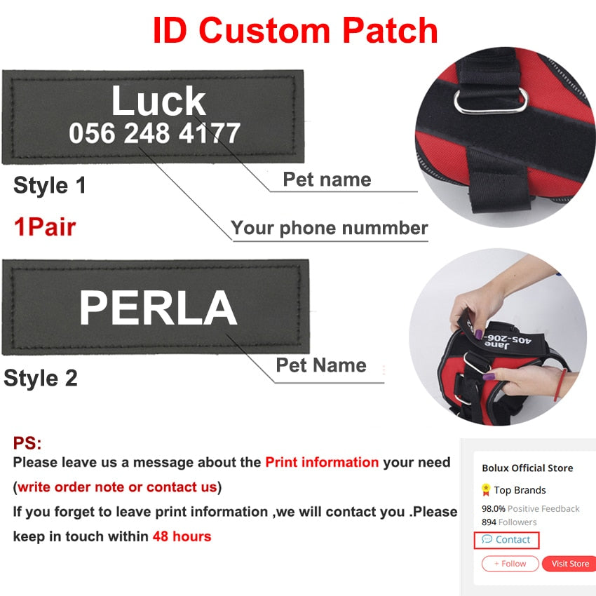 - Personalize Two Custom Patches – Each Dog Harness Comes With Two High-Quality Patches That Can Be Customized With Your Dog’s Name And Your Phone Number To Make It A Smart Way To Protect Them If They Get Off The Leash.